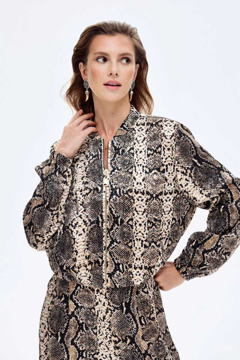 Önü fermuarlı yılan desenli parlak kumaştan uzun kollu lastik manşetli içi astarlı yan cepli kısa ceket.Kumaş BilgisiViskon %100Yıkama TalimatlarıMakinede 30° Yıkayabilirsiniz Gerektiğinde Klorsuz Çamaşır Suyu Konabilir Kurutma Makinesinde Normal Düşük Isıda Düşük Isıda Ütüleyiniz Kuru Temizleme Az Çözücü