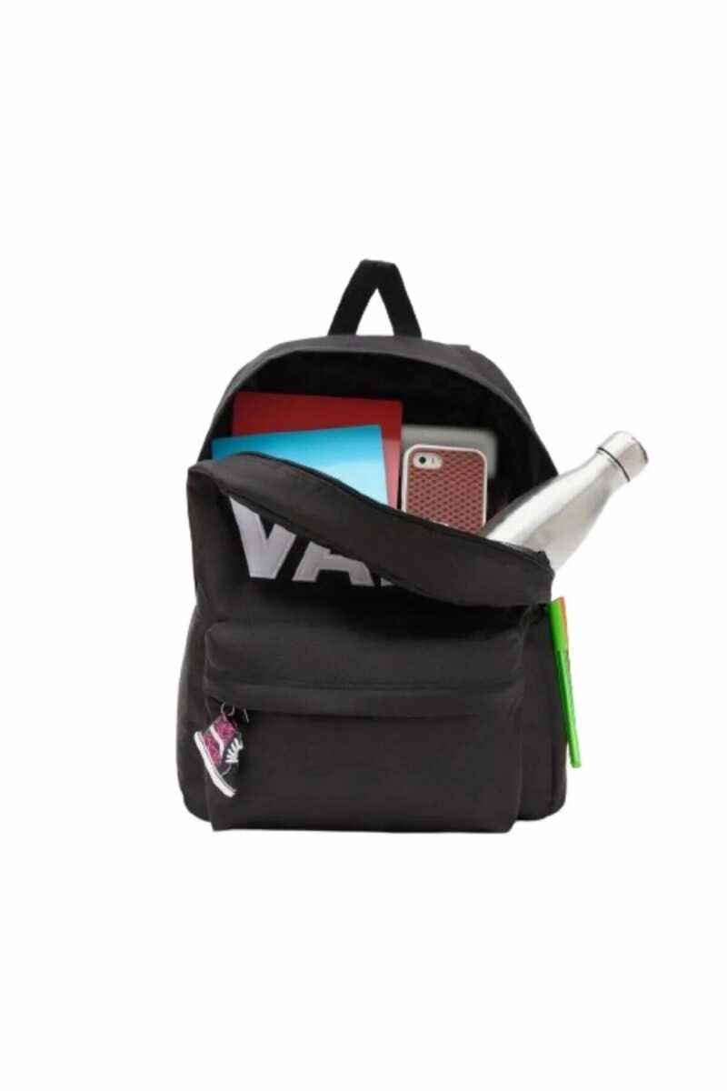 Vans Old Skool Drop V Sırt Çantası %100 geri dönüştürülmüş polyester kumaştan üretilir. Bir adet geniş ana bölmesi hızlı erişim için düzenleme bölmeli ön fermuarlı cebi ve su şişesi cebi bulunur. 38 cm dizüstü bilgisayar cebi ve ön tarafında Vans logosu vardır ve 419 cm Y x 324 cm G x 121 cm D ölçülerine sahiptir.